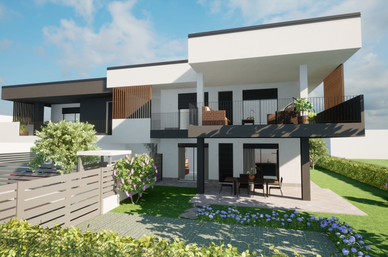 Prossimo al centro di Castelnuovo e comodo ai principali servizi, proponiamo in vendita, in un contesto di soli tre appartamenti in palazzina di nuovissima costruzione, un appartamento al piano terra con tre camere da letto, un ampio soggiorno, due bagni, un ripostiglio, un garage singolo, un posto auto scoperto, un comodo e spazioso porticato, nonché un giardino di circa 300 metri quadrati. L'immobile, di prossima costruzione, verrà costruito con tutte le più moderne tecniche edilizie in materia di isolamento termico, isolamento acustico e di risparmio energetico. Al momento è ancora aperta la possibilità di personalizzare gli interni della costruzione. Ottimo capitolato.